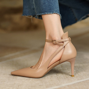 气质2022年春季新款高跟鞋女细跟尖头单鞋女真皮浅...