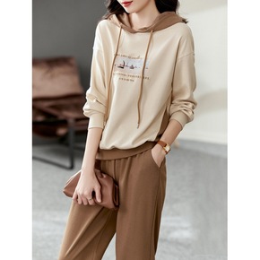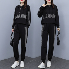 时尚休闲运动套装女2022秋冬新款宽松卫裤连帽卫衣...