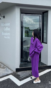 时尚运动套装女2022年秋季新款宽松圆领开衫卫衣外...
