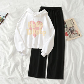 单/套装小个子短款卫衣阔腿裤两件套女秋季新款洋气休...