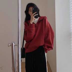 韩国拉链连帽卫衣女生宽松女装中长款上衣百搭春秋外套...