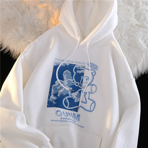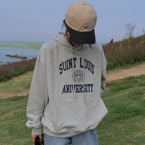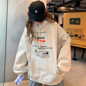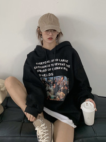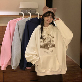 2021秋装新款BF风宽松字母印花套头连帽长袖卫衣...
