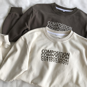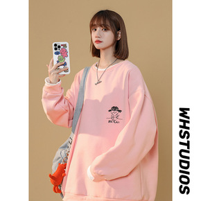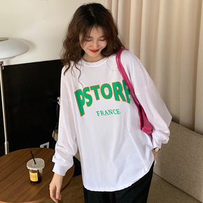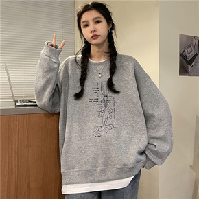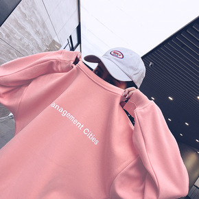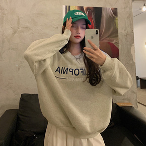 2021秋季韩版字母印花宽松BF风圆领长袖卫衣女中...