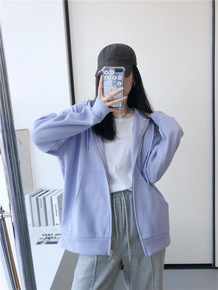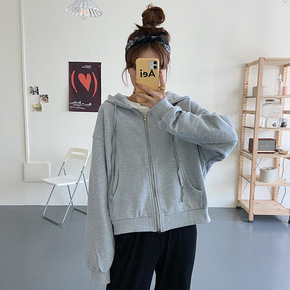2020年新款早秋薄款卫衣女宽松韩版百搭bf拉链盐...