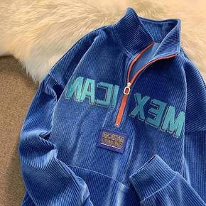 韩版刺绣字母圆领卫衣女ins美式潮流复古宽松bf风...