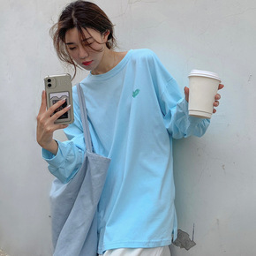 薄荷绿圆领套头卫衣女春秋薄款宽松bf慵懒风长袖上衣...