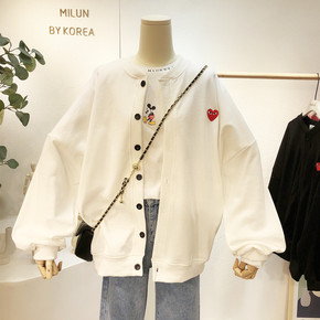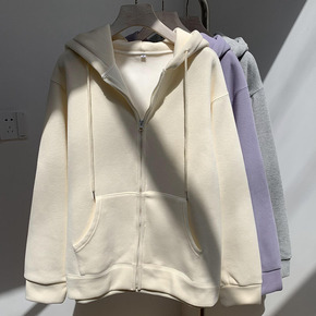 2020秋季新款韩版BF风宽松显瘦简约纯色开衫拉链...