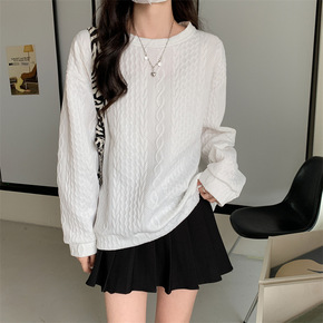 2022春秋女装新款韩版麻花圆领长袖卫衣女套头BF...