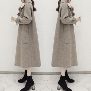 秋冬纯羊毛双面呢大衣女士过膝中长款宽松毛呢外套西装...