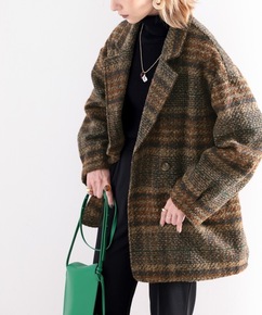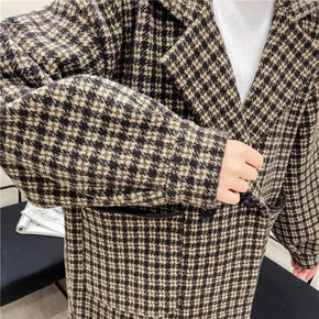 日系复古格子双层外套大衣2021秋冬新款时尚气质宽...