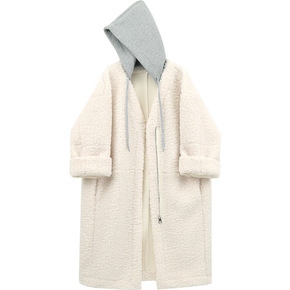 长款羊羔毛外套女季新款连帽加绒加厚毛绒大衣...