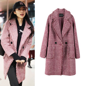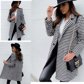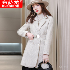 2021秋冬季新款时尚女装流行赫本风风衣毛呢大衣中...