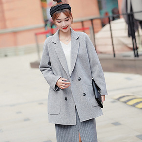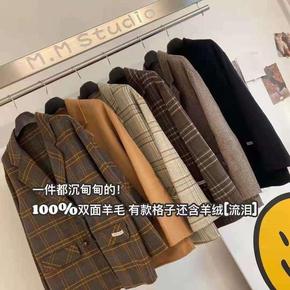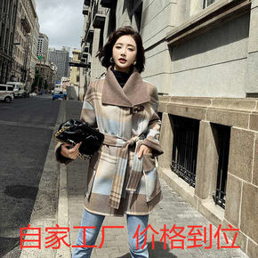 反季清仓秋冬季时尚洋气双面羊绒大衣女短款格子宽松双...