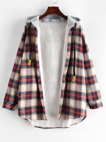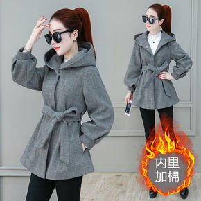 跨境加绒连帽格子女中长款复古秋冬新款韩版学生宽松外...