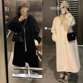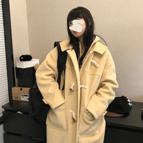 网红 2021秋冬韩版时尚少女的店 中长款牛角扣毛...