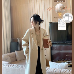 南瓜谷 15羊绒大衣~驼色双面毛呢外套女中长款20...