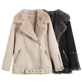 HEYGIRL黑哥 保命抗风!羊羔毛毛长外套女冬加...