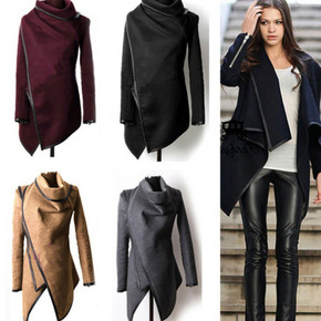 速卖通wish亚马逊爆款 秋冬纯色长袖西装领毛呢大...