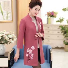 中老年女装中长款新款2020妈妈装春秋毛呢外套中年...