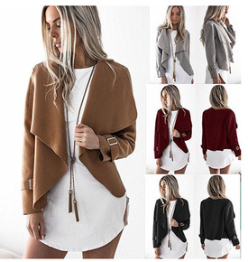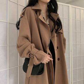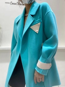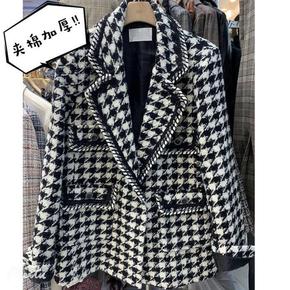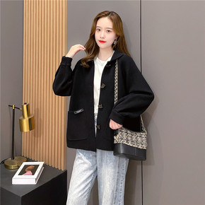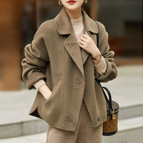 2021秋冬新款韩版宽松大码西装领双面呢上衣长袖短...