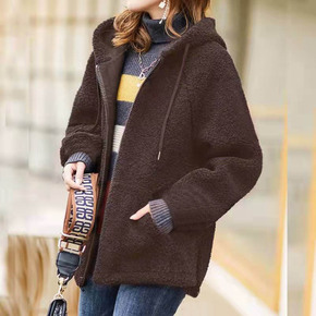 仿羊羔绒中长款外套女2021秋冬季新款妈妈韩版大码...