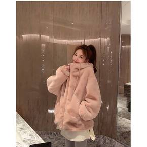 大码仿羊羔毛外套2022冬季新款韩版宽松遮肉显瘦保...