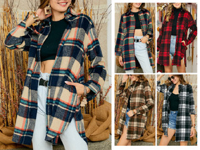 独立站wish亚马逊新款2022 秋冬中长款长袖格...