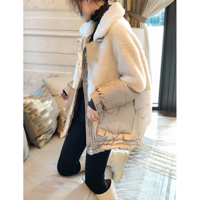 仿羊羔毛拼接羽绒服女白色加绒毛毛外套欧货潮冬季20...