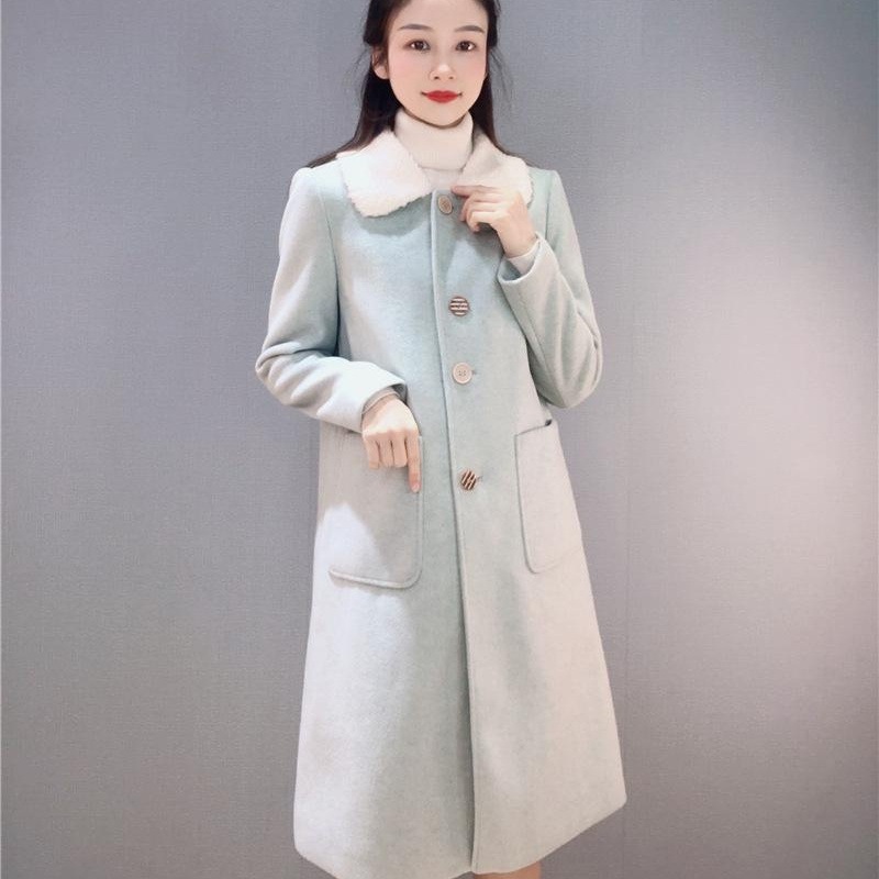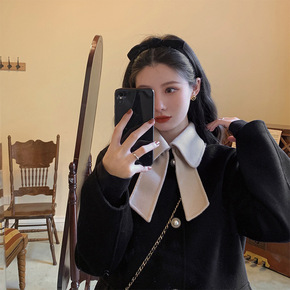 【同步在售】2021秋冬韩版时尚甜美减龄娃娃领纯色...