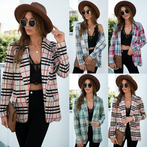 格子西装外套女韩版宽松2020春秋新款学生复古网红...