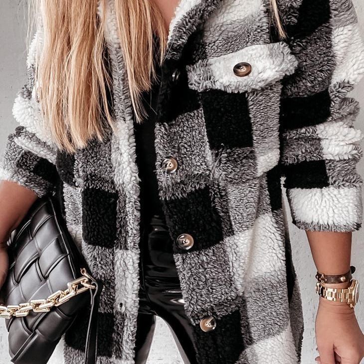 2021亚马逊新款 欧美风中长款格子休闲衬衣外套 ...