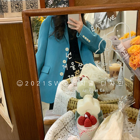 粉色休闲西装外套女小个子韩版宽松春季秋2022新款...