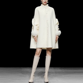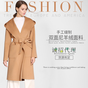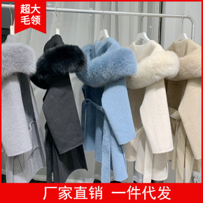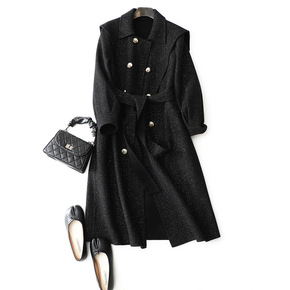 欧洲站重工高端双面呢羊绒大衣女2021秋冬中长款手...