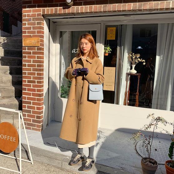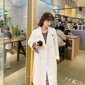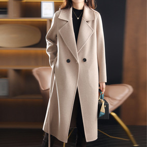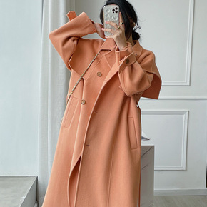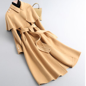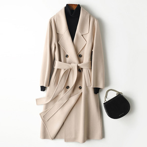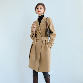 2021新款双面羊毛大衣女中长款腰带韩版纯色通勤西...
