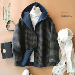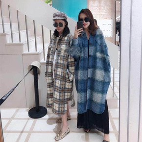 2020秋冬新款加厚毛呢大衣格子宽松大码女装长款连...