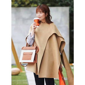 高端秋冬羊毛呢外套赫本风2021新款中长款斗篷腰带...