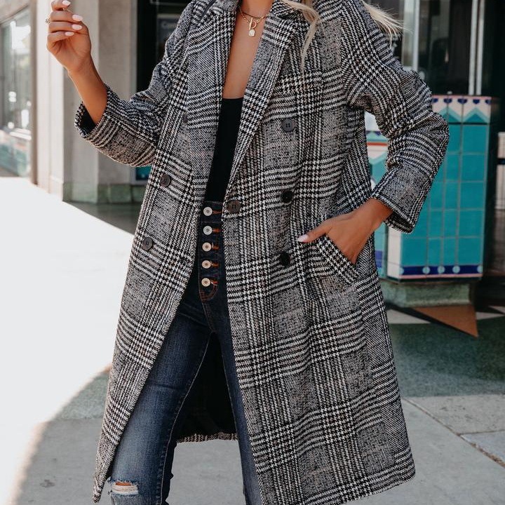 2021跨境爆款亚马逊外贸秋冬新款欧美女装格子毛呢...