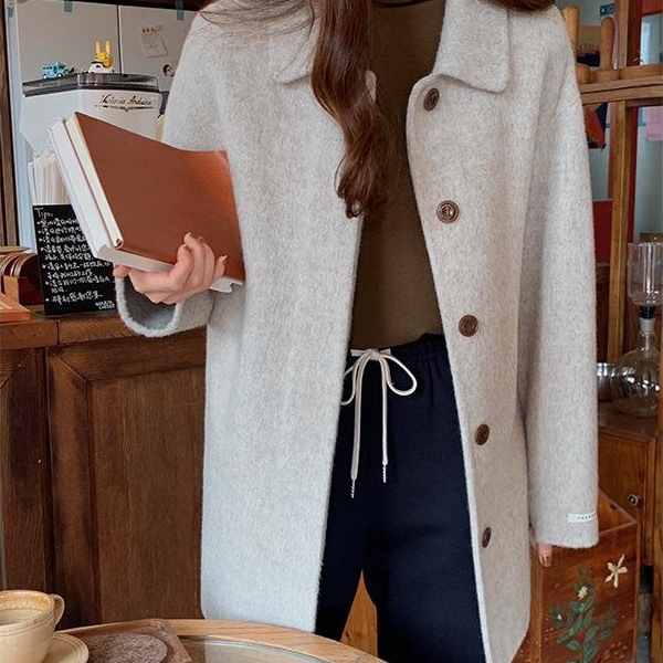 新年福利款!纯色毛呢大衣简约显瘦外套女上衣秋冬新款...