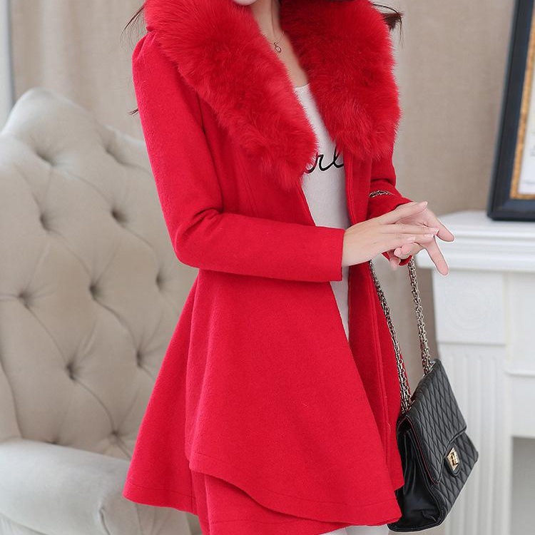 跨境专供2021秋冬毛呢女外套亚马逊妮子毛领大衣e...
