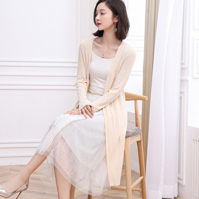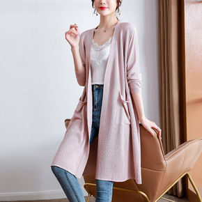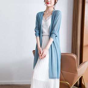 2022年春装新款针织衫纯色冰丝空调衫中长款防晒开...