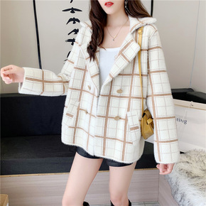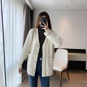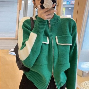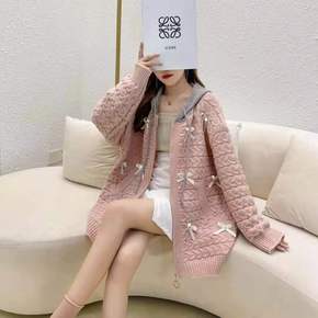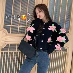 2022春秋季女装雪尼尔毛衣外套女宽松口袋学院风花...