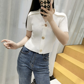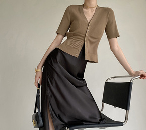 6056#2022夏季新款气质轻熟风设计感V领修身...