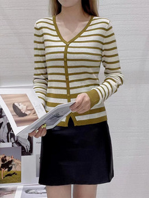 宇诚气质v领条纹针织开衫女春秋2022新款薄款宽松...