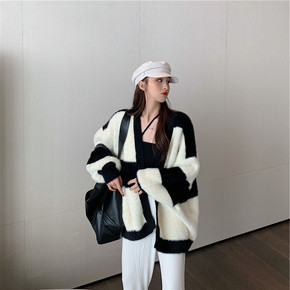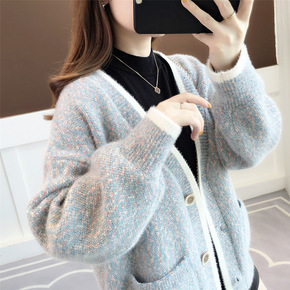 仿水貂绒毛衣开衫女年新款秋冬季加厚韩版宽松25-2...