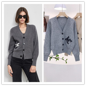 6599#秋冬季新款英伦学院风减龄V领刺绣字母羊绒...