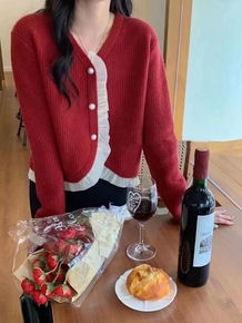 2022早秋新款针织开衫女小香风长袖气质撞色系带圆...