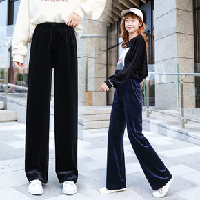 坠感丝绒阔腿裤女秋冬高腰垂感直筒洋气宽松长裤休闲拖...