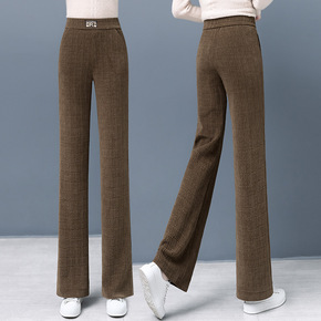 燕麦色直筒裤高腰休闲奶奶长裤女秋冬加厚针织裤宽松阔...