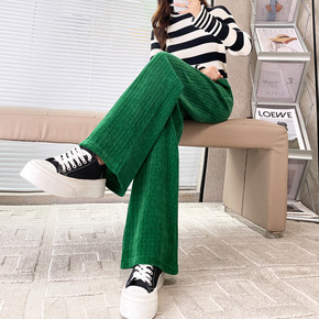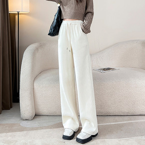 实拍雪尼尔阔腿裤女秋冬季2022年新款爆款休闲灯芯...