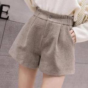 毛呢短裤女秋冬新款加厚松紧腰高腰百搭宽松外穿阔腿裤...